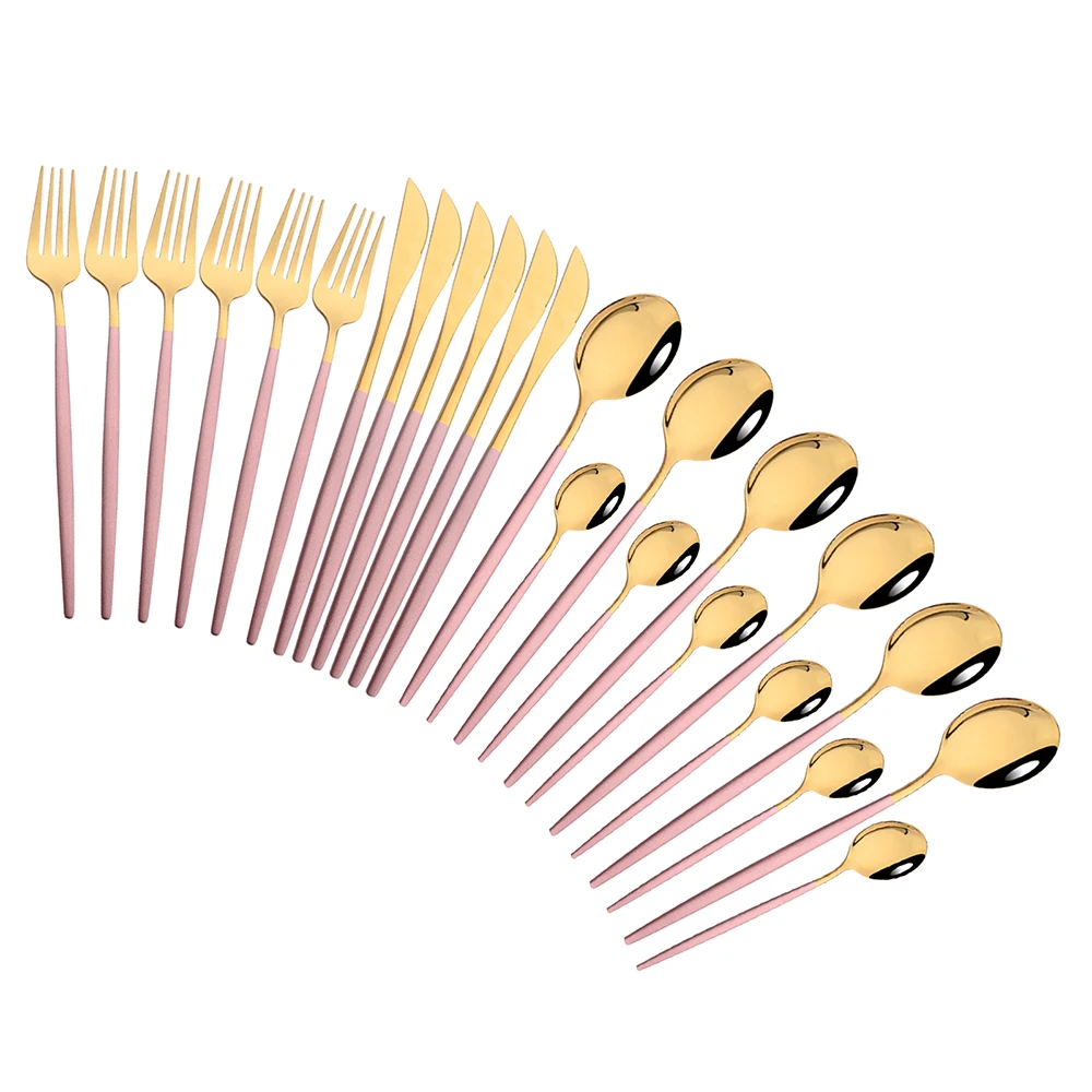 Różowy zestaw złotych sztućców zestaw obiadowy ze stali nierdzewnej 24 sztuk noże widelce łyżeczki do kawy zestaw sztućców kuchnia zastawa stołowa zestaw