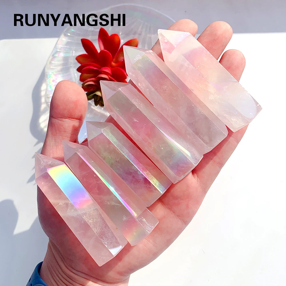 Runyangshi kamienie naturalne kryształ punkt różdżka róża uzdrawianie kwarcem klejnot galwanicznie anioł Aura dekoracji wnętrz
