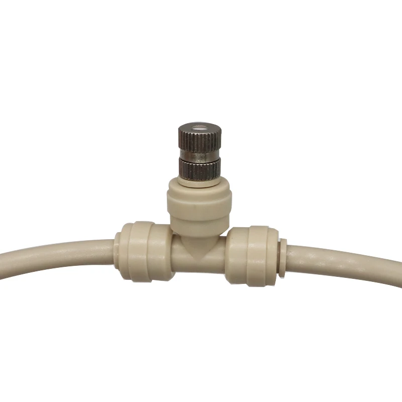 1. Zaleca się zainstalowanie systemu chłodzenia mgłą na wysokości 2.5m-3m.2. Podłącz adapter do tap.3. Włącz kran wody, aby umyć system przez 1 minutę, aby oczyścić system i usunąć wszelkie zabrudzenia. Przykręć dysze rozpylające do złączek Tee, z wyjątkiem ostatniego na końcówce plug.5. Włącz kran wody, aby umyć system przez 2 minuty, aby upewnić się, że system jest w pełni oczyszczony.6. Wyłącz wodę i zainstaluj ostatnią dyszę w złączce za pomocą wtyczki końcowej. Zamocuj linię zaparowania za pomocą dostarczonych zacisków na opaski. 8. 9. Włącz lekko kran, aż dysze będą działać, ciesz się chłodzeniem systemu chłodzenia mgłą. Wyłącz dysze, utrzymuj je w suchości i czystości, gdy nie korzystasz z systemu chłodzenia mgłą przez długi czas