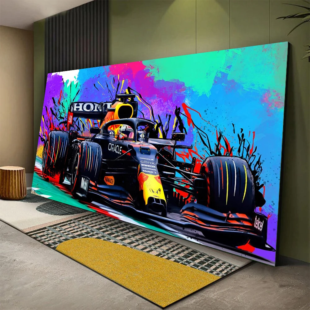 Samochód wyścigowy F1 Super samochód Wall Art złoty nowoczesny popularny kolorowy sto pieniędzy płótno malarstwo Quadro plakat na ścianę obraz ozdobny