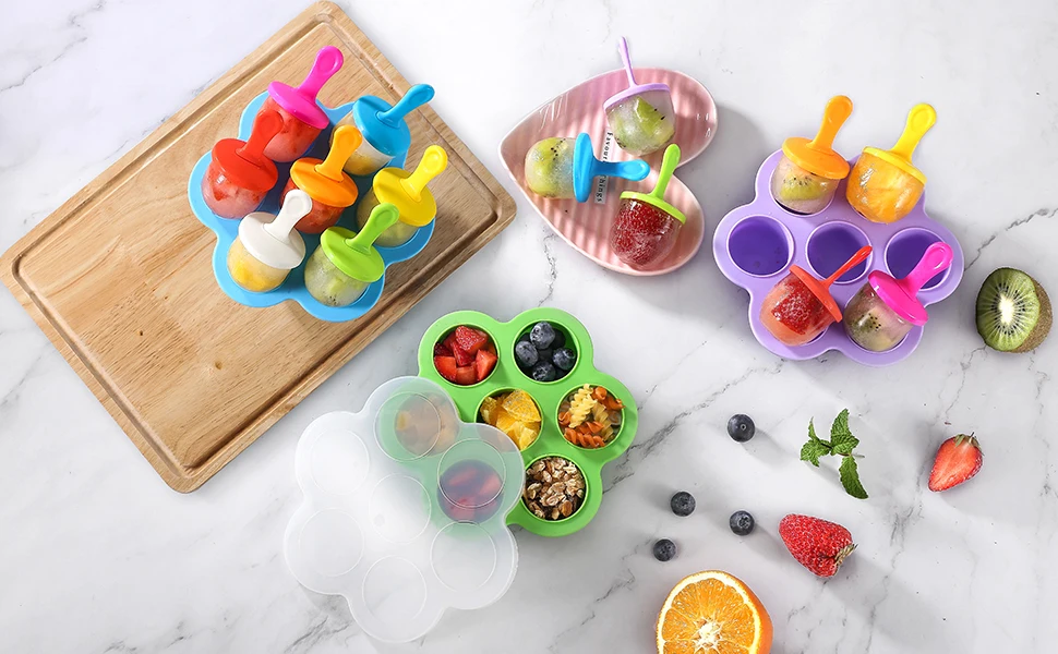 5. Silikonowe formy do lodów przynoszą wiele radości naszemu życiu. Możemy go użyć do przygotowania pysznego i kolorowego jogurtu, owoców i warzyw. Można go również przekazać rodzinie i przyjaciołom jako idealny prezent świąteczny i urodzinowy.