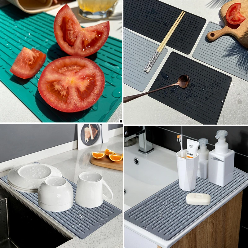 Odporny na ciepło-oprócz tego, że jest to wysokiej jakości, trwała mata do suszenia naczyń, podwaja się również jako odporny na ciepło trivet (do 450 F) do stołu i blatu, idealny jako mata dla zwierząt domowych, wkładka do lodówki, wkładka do szafek.