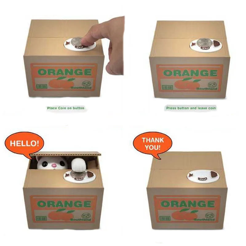 Mechaniczny kotek kradnie monety, które pomogą ci zaoszczędzić.