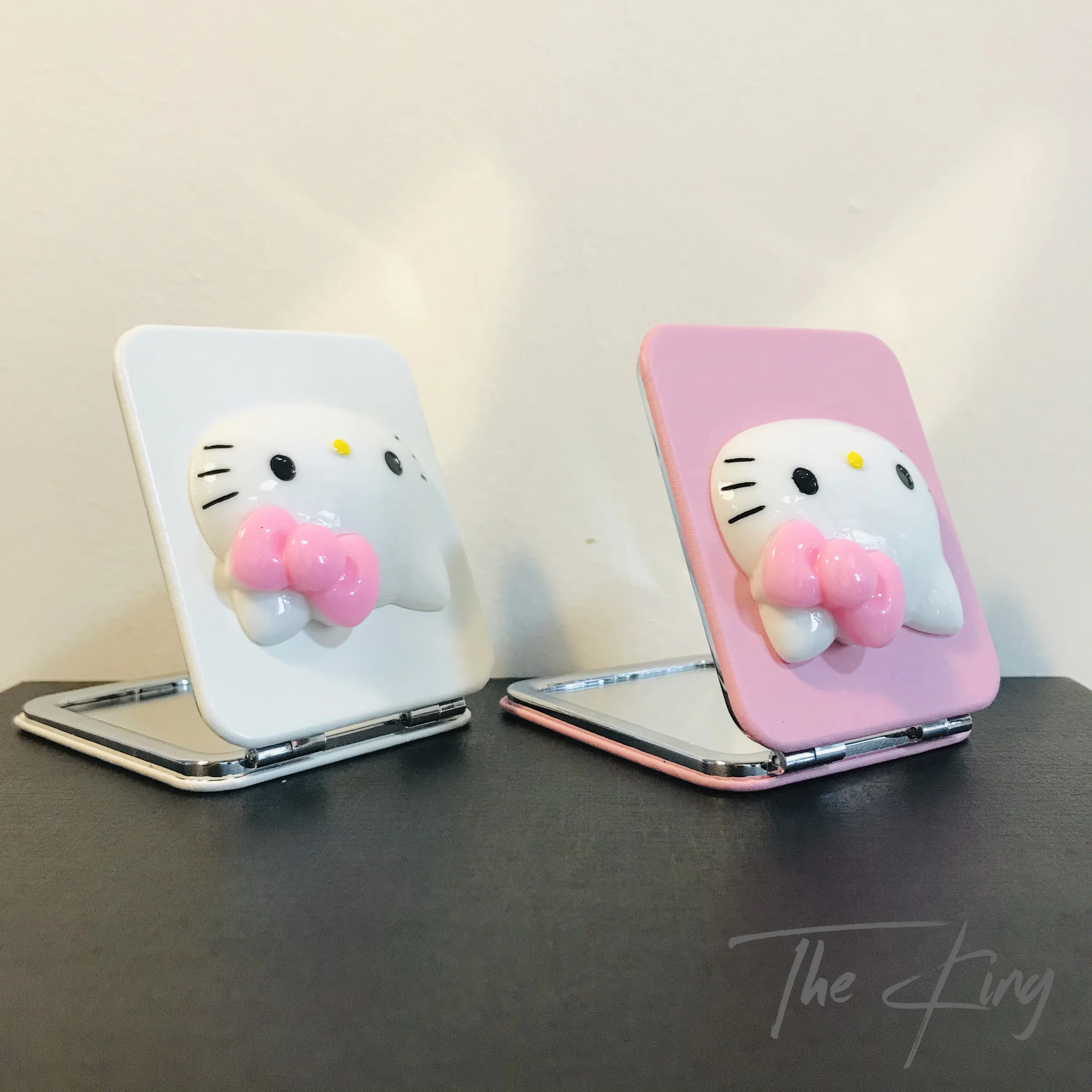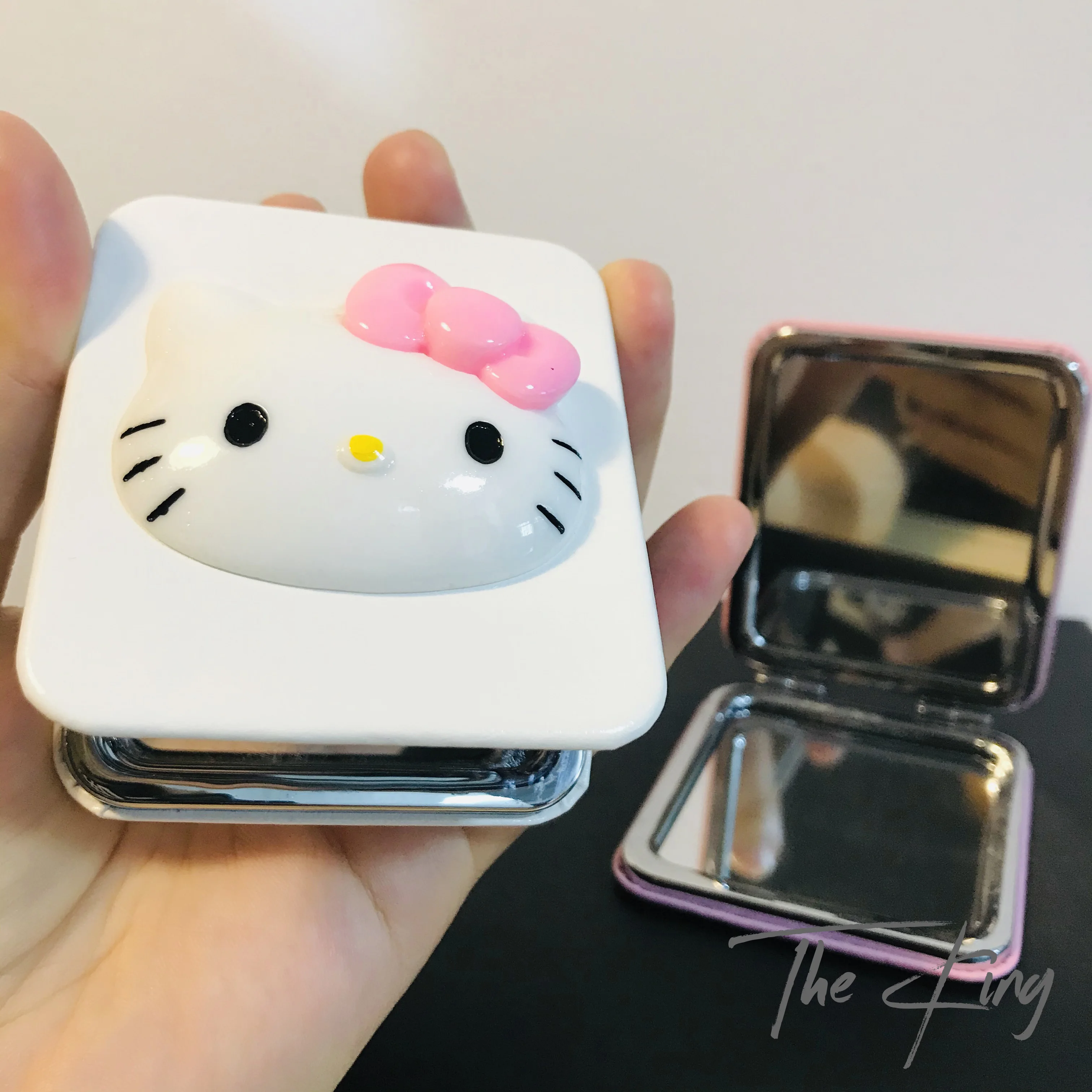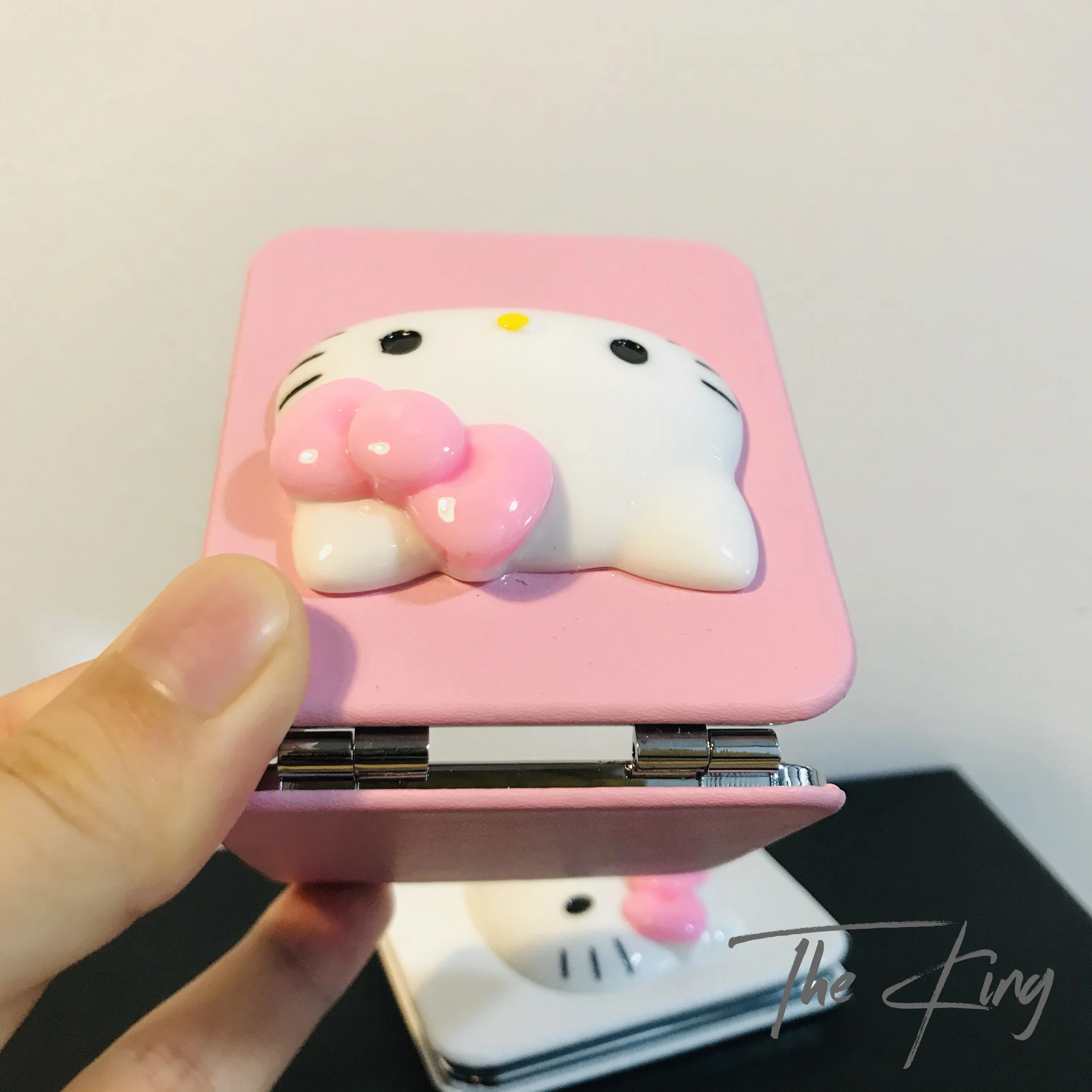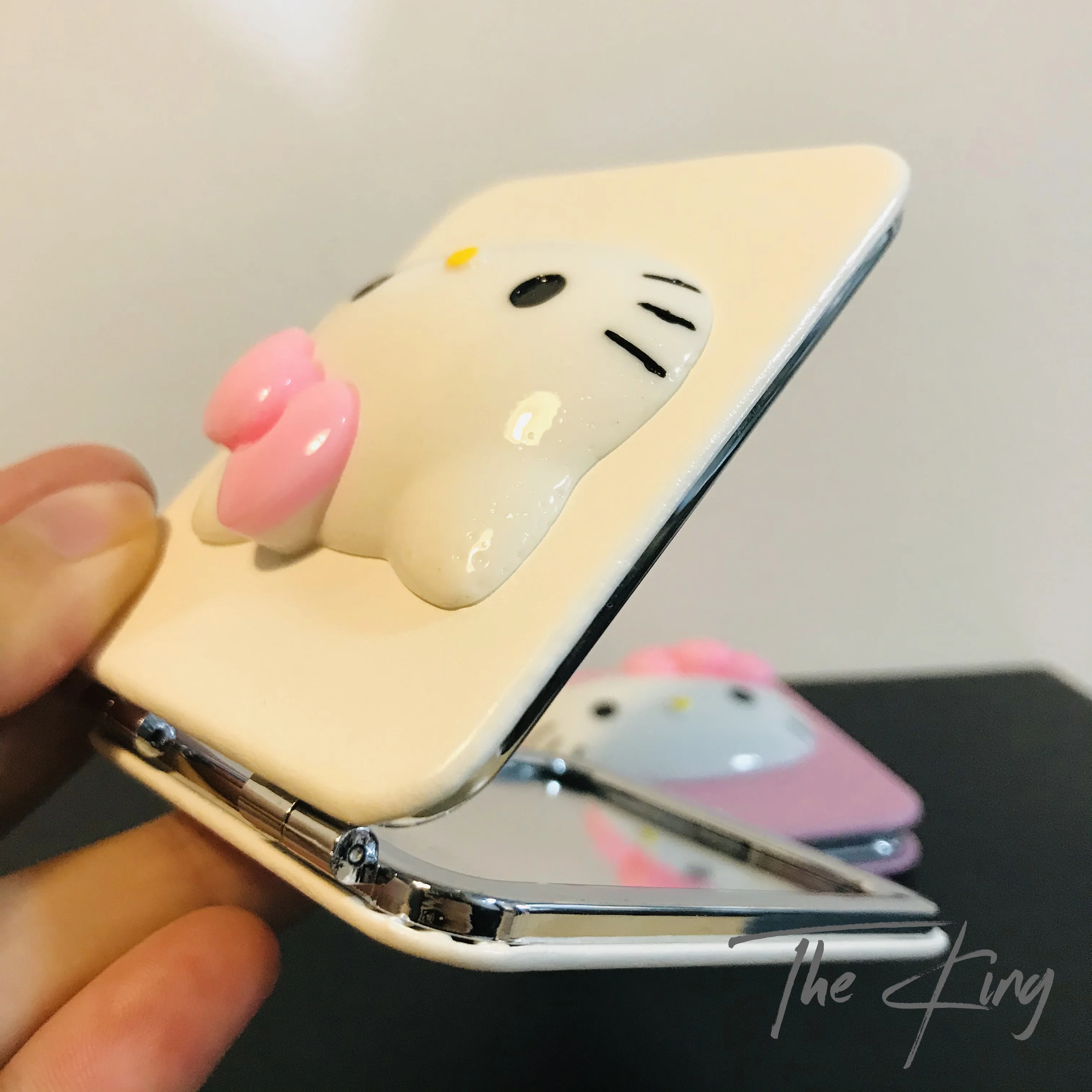 Składane przenośne lustro do makijażu kreskówki Kitty lustra PU skóra Mini lusterko Kawaii makijaż wystrój kotek małe lusterko różowe
