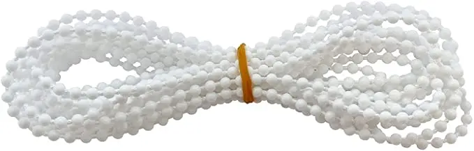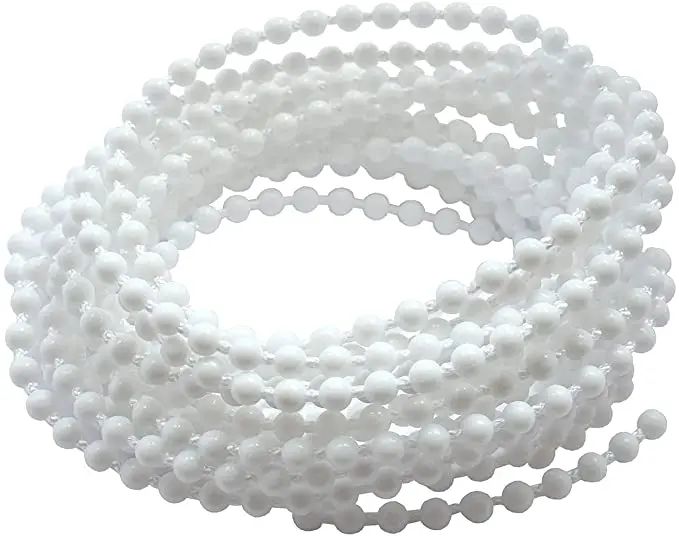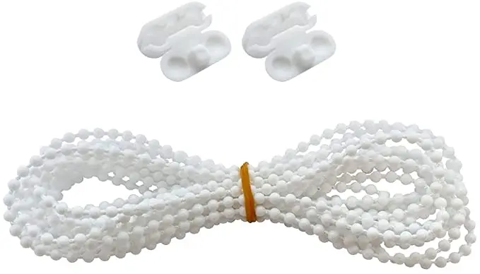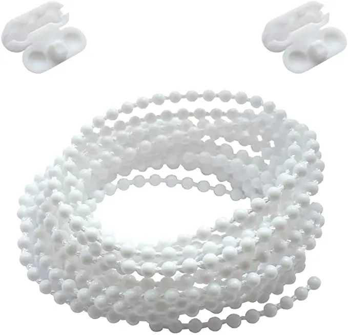 • Ciągła 5m długość roleta piłka plastikowa łańcuch z 2 złącze z tworzywa sztucznego klipsy. Każdy koralik mierzy 4.5mm z 5 koralikami na cal wzdłuż sznurka. Wewnętrzny przewód wykonany jest z wysokiej jakości wytrzymałego i elastycznego utkany nylon.