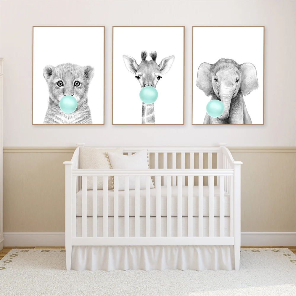 Teal Bubble Elephant żyrafa dziecko plakat zwierząt ściany płótno artystyczne pokój dziecięcy obraz do dekoracji grafika do pokoju dziecięcego malarstwo Nordic Kid