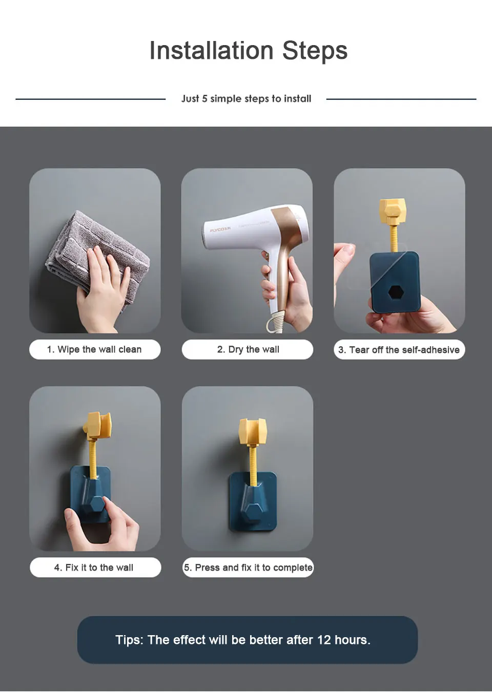 7. Łatwy w instalacji: nie potrzebujesz instrukcji, aby zainstalować ten wieszak pod prysznic. Przyklej ten produkt do ściany łazienki.