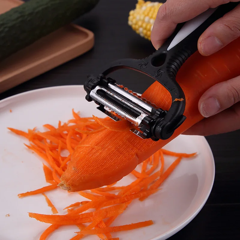 Jest to obieraczka wielofunkcyjna z obrotowymi ostrzami 360 stopni. Ma 3 rodzaje ostrzy, które mogą zetrzeć żywność w różne kształty. Ostre i wypukłe boki mogą być używane do obierania owoców jak pomarańcza. Jest to idealne narzędzie do gotowania dla gospodyni domowej.