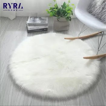 1pc okrągły dywanik Shaggy pluszowy wełniany dywan miękkie Faux kożuch dywaniki z futra do sypialni salon podłoga w pomieszczeniu biały na piętro w domu Mat
