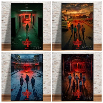 2022 Stranger Things plakat sezon 4 3 2 1 znaków Retro TV film i w najlepszych cenach jedwabny na ścianę naklejki artystyczne dekoracja sypialni 40×60 50x75cm