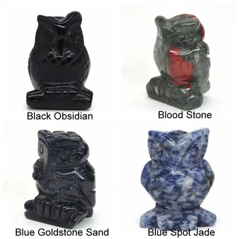 1.5 "sowa statua naturalny kamień szlachetny dekoracji pokoju uzdrawiający kryształ zwierząt figurki Reiki rzeźbione kamienie hurtownie