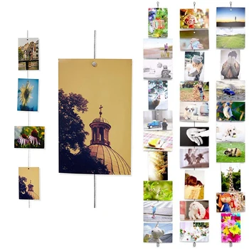 1.5M srebrny kabel magnetyczny lina zdjęcie ramka na zdjęcie ramki String wiszące rzemiosło dzieci zdjęcie do pokoju wyświetl dekoracje tła