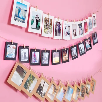 10 sztuk papier kraftowy DIY ramka na zdjęcia z klipsami i 2M liny 3/4/5/6/7 Cal ścienna ramka na zdjęcia obraz na ścianę Album Home Decoration
