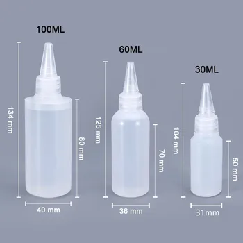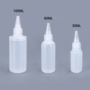 10 sztuk plastikowe butelki z kroplomierzem na płynny olej klej miękki materiał HDPE przenośny pojemnik wielokrotnego napełniania 30ML 60ML 100ML