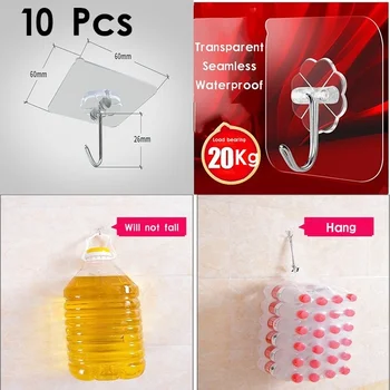 10 sztuk silne domowe haczyki kuchenne przezroczyste przyssawki Sucker wieszak ścienny do kuchni łazienka łożyska 20KG haki i szyny