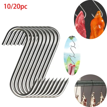 10/20 sztuk ze stali nierdzewnej S haki z ostra końcówka naczynia mięsa wieszak na ubrania wieszaczki na sklep mięsny kuchenne narzędzia do pieczenia