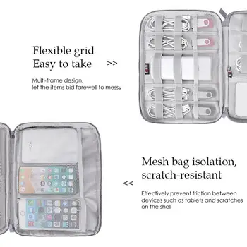 Szara pamięć cyfrowa torba dane USB Organizer do kabli przewód słuchawkowy torba Pen Power Bank zestaw podróżny etui akcesoria elektroniczne