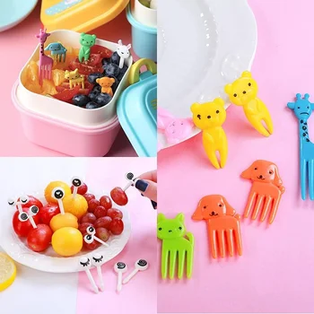 Widelec do owoców zwierząt Mini Cartoon dzieci przekąska deser ciasto jedzenie owoce wybierz wykałaczka lunche Decor losowy kolor
