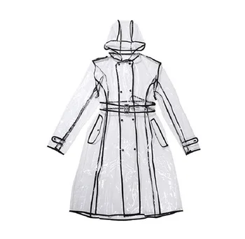 Wodoodporne przeźroczyste tworzywo sztuczne jasne długie damskie płaszcze przeciwdeszczowe kobiety mężczyźni moda płaszcz przeciwdeszczowy kurtki z kapturem z paskiem
