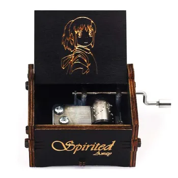 Wszystko czarne hurtownia antyczne rzeźbione drewniana ręka korba Spirited Away pozytywka prezent na boże narodzenie prezent urodzinowy strona dekoracji