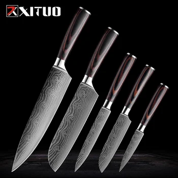 XITUO zestaw noży kuchennych tasak do mięsa noże szefa kuchni ze stali nierdzewnej Santoku owoce warzywa nóż Damascus wzór gotowanie kuter