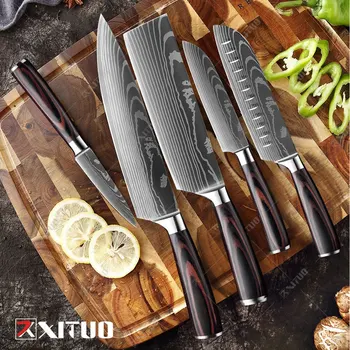 XITUO kuchenne noże szefa kuchni zestaw wysokiej węgla ze stali nierdzewnej ostre trybowanie nóż do kotletów krojenie Santoku Chef nóż narzędzie do gotowania