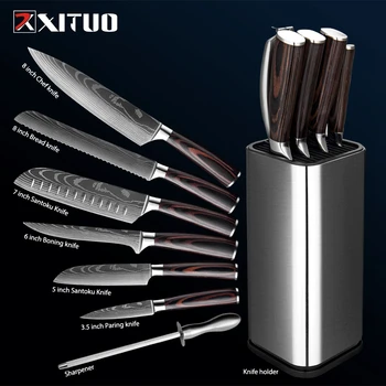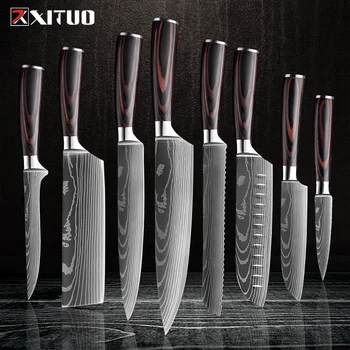 XITUO zestaw noży szefa kuchni nóż ze stali nierdzewnej uchwyt ostry Santoku noże tasak chleb nóż do parowania kuchnia kości nożyczki gotowanie