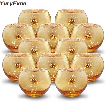 YuryFvna 6/12 sztuk Mercury szklane świeczniki świeczki wotywne świecznik dekoracje ślubne strony prezent do dekoracji domu