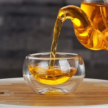 Żaroodporne przezroczyste dwuwarstwowe szkło mała herbata Kung Fu zestaw filiżanek degustacja kubki izolacja cieplna kubek na gorące napoje chińskie filiżanki