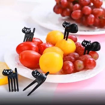 Zastawa stołowa czarny kot widelec do owoców wybiera Mini kreskówkowe ciasto deser żywności zwierząt widelce 6/12/18 sztuk/paczka Bento Lunch wykałaczka Party