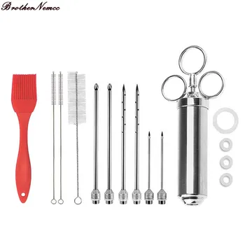 Ze stali nierdzewnej grill wtryskiwacz strzykawka, marynata mięso wtryskiwacz, 2 uncji pojemności z 6 igieł szczotka silikonowa