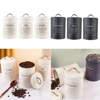 Zestaw 3 metalowych herbata kawa przechowywanie cukru słoiki kanister Bin Pot kuchnia pojemnik do przechowywania kawy zestawy pojemników cukru