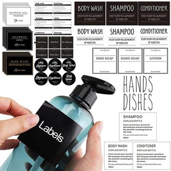 Zestaw etykiet dozownik do mydła zestaw naklejek wodoodporne unikalne naklejki na butelki wymienne etykiety szamponu odżywka