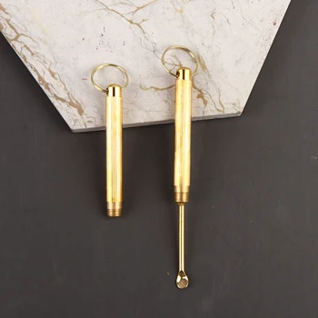 Złoty mosiądz tabaka łyżka Sniffer Snorter Powder Hoover Hooteer Metal tabaka fajka do tytoniu łopata breloczek kieszonkowy rozmiar