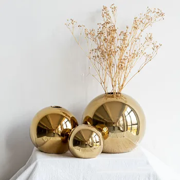 Złoty galwanicznie kulka ceramiczna wazon na kwiaty Modern Art Pot do wnętrza domu salon stół biurowy dekoracja biurka prezenty