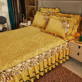 Złoty luksus zima narzuta na łóżku gruba strona główna falbanka na ramę łóżka w stylu prześcieradła haft bawełna w europejskim stylu łóżko rozprzestrzenia