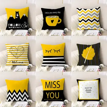 Żółty europejski paski geometryczne obicia na poduszki poduszka pokrywa dla Home Decor Sofa Seat krzesło dekoracyjne poszewka na poduszkę 45x45cm
