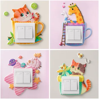 Zwierząt jednorożec etui z flamingiem Cartoon wystrój salonu 3D ściany silikonowe on-off przełącznik lampa gniazdo z przełącznikiem naklejka ścienna