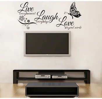 Żywy śmiech miłość motyl dekoracje ścienne z motywem kwiatowym nowoczesne naklejki ścienne cytaty winyle naklejki Home Decor salon