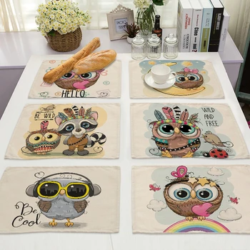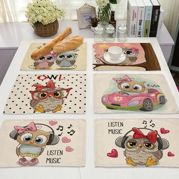 1 sztuk Kawaii wzór sowy podkładka kuchenna bawełniana pościel stół maty Coaster Pad miska mata na kubki 42*32cm Home Decor ML0007