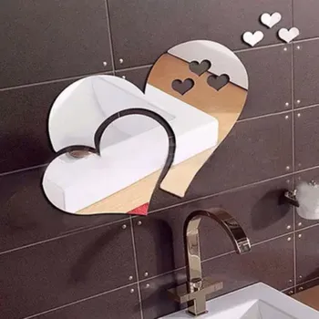 1 sztuk moda delikatne plastikowe wielokolorowe lustra ozdobne wysokiej jakości kreatywny w kształcie serca dekoracji naklejki ścienne