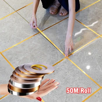 0.5/1/2*5000cm Silver Gold przylepne na podłogę płytki taśmy szew naklejki taśma z folii miedzianej wodoodporna ściana taśma uszczelniająca Home Decoration