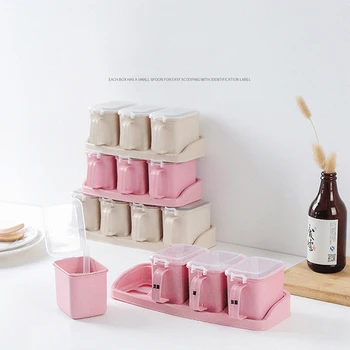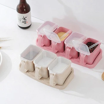 1 zestaw sól słoik na przyprawy przyprawy pojemniki z łyżeczką do przechowywania pudełko z przyprawami