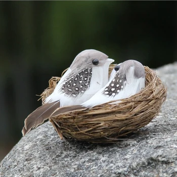 1 zestaw sztuczne ptasie ptaki i gniazdo i jajko kreatywne rzemiosło ptaki rzeźba ozdoby do trawników ozdoby do domu na trawnik ogrodowy