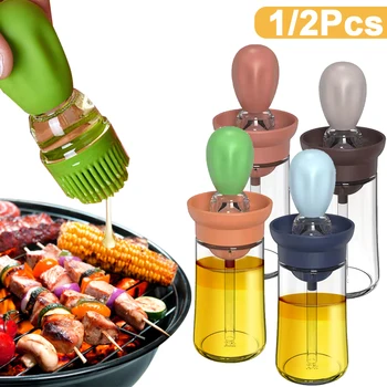 1/2 szt. Dozownik oleju kuchennego z pędzelkiem silikonowy grill szczotka do olejowania szklany olej butelkowany pojemnikiem na sos do grillowania gotowanie pieczenia