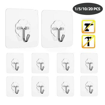 1/3/5/10 sztuk haki ścienne bez szwu samoprzylepne haczyki drzwi wieszaki na ścianę przezroczysty wielokrotnego użytku hak do zawieszania do kuchni łazienka