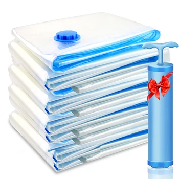 1/5 sztuk próżniowe torebki do przechowywania, torba oszczędzająca przestrzeń z pompą, Vacume opakowanie torba do przechowywania na ubrania, torby wielokrotnego użytku podwójny zamek błyskawiczny uszczelnienie