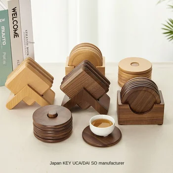1/6 sztuk drewniane podstawki zestaw czarny orzech z litego drewna okrągły mata na stół podkładka termoizolacyjna Box dolny uchwyt podkładka