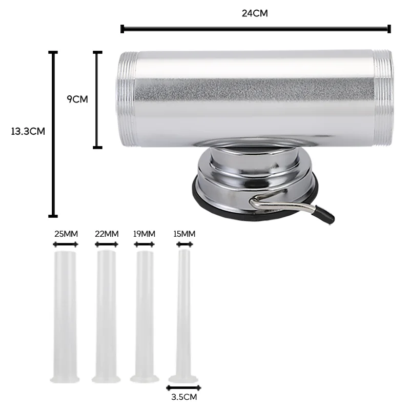 【4 różne rozmiary tubes】 ta maszyna do kiełbasy jest dostarczana z 4 rozmiarami tubek do nadziewania kiełbasy 15mm, 19mm ,22mm i 25mm, aby uzyskać różne rozmiary kiełbas i salamy.