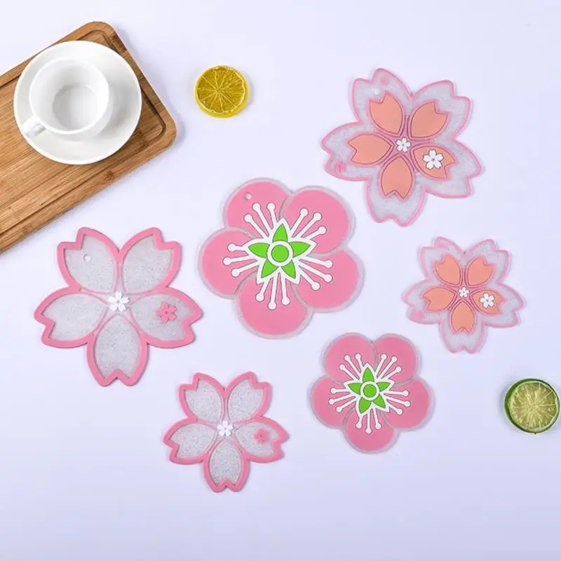 1/2 sztuk Cherry koniczyna na szczęście kwiat podkładka termoizolacyjna jadalnia mata na stół antypoślizgowe podkładki pod kubki antypoślizgowe Coaster akcesoria kuchenne
